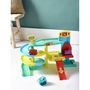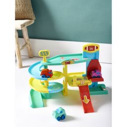 Enfant de 2 ans. Toutefois les voitures ne glissent pas toutes seules, il doit les pousser et l'ascenseur trop dur à descendre et à monter, aide d'un adulte. Mais mon petit-fils l'adore. Pour un 1er garage, c'est bien. Et je l'ai eu de plus avec remise de 50%.