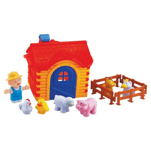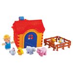- 1 corps de ferme, 1 enclos, 1 fermier et 6 animaux : 2 vaches, 1 cochon, 1 mouton, 1 poule, 1 poussin.