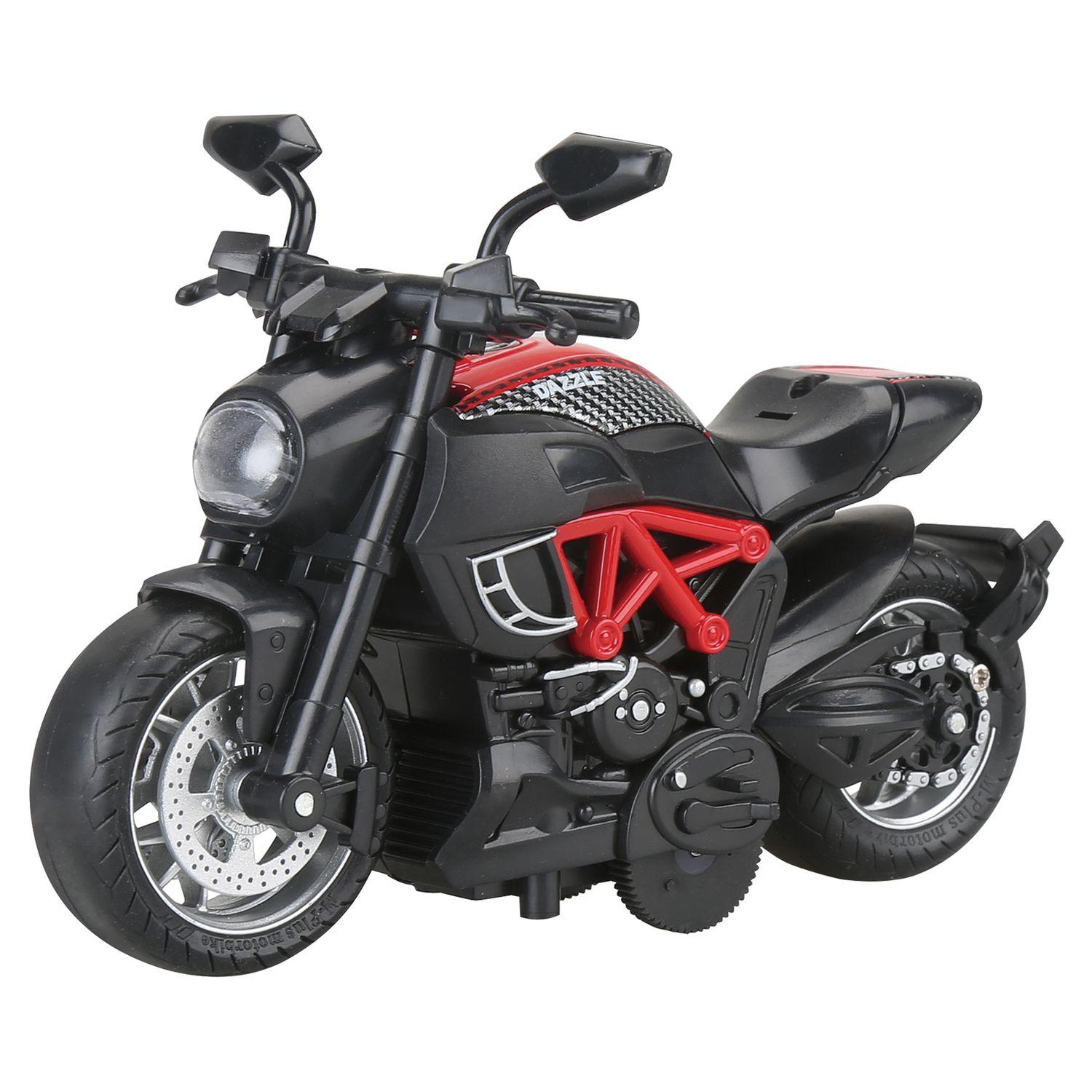 Avec cette moto en métal 1:14 très réaliste, gagne les courses les plus folles grâce à sa rapidité extrême ! Plus fou encore : les phares s'allument et la moto fait de la musique, pour être à fond dans l'esprit course !