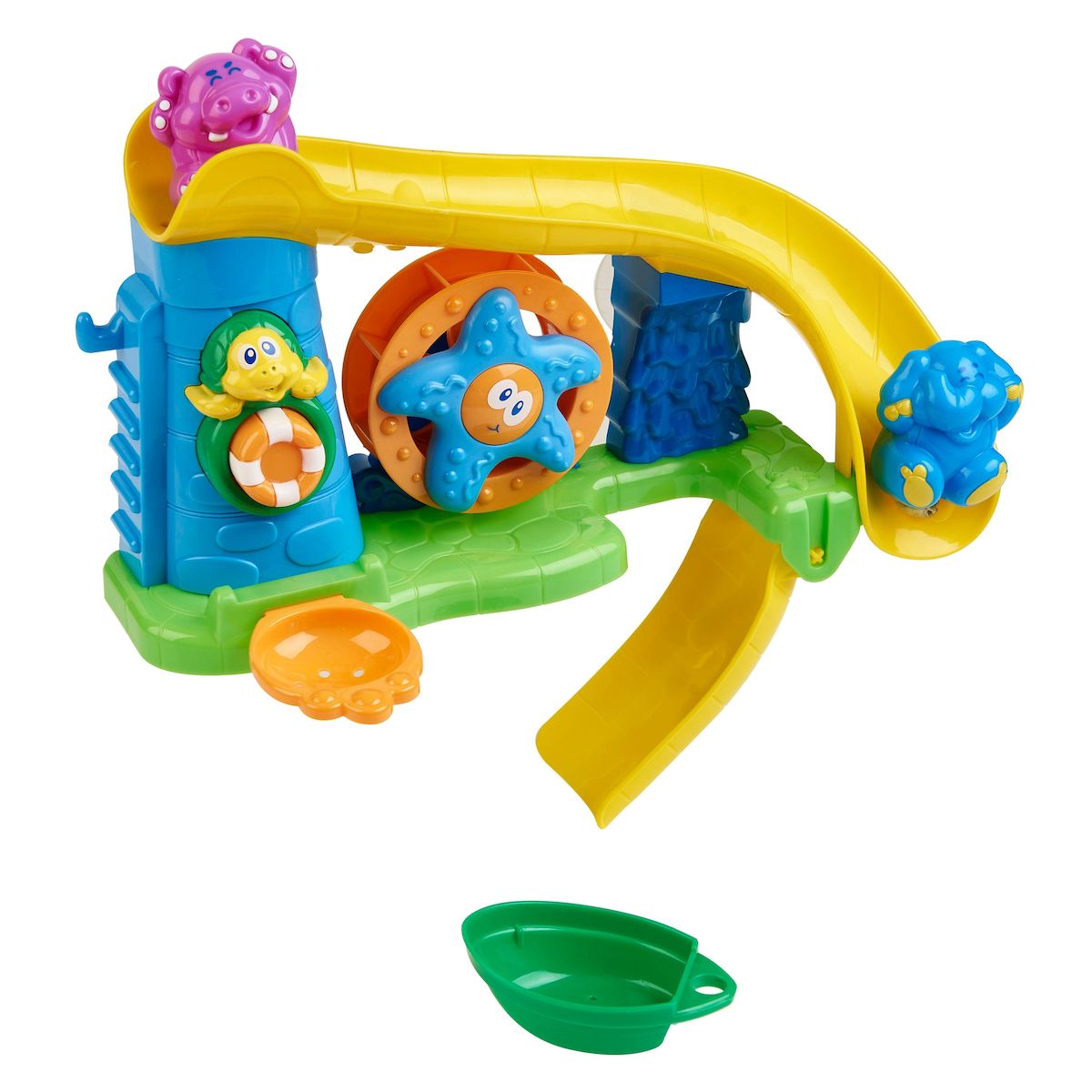 Jeux de bain pas super , les animaux ne glissent pas sur le premier toboggan, le deuxième est mal placé , semble de mauvaise qualité, la roue tourne mal seule la tortue qui crache de l'eau est sympa et encore
