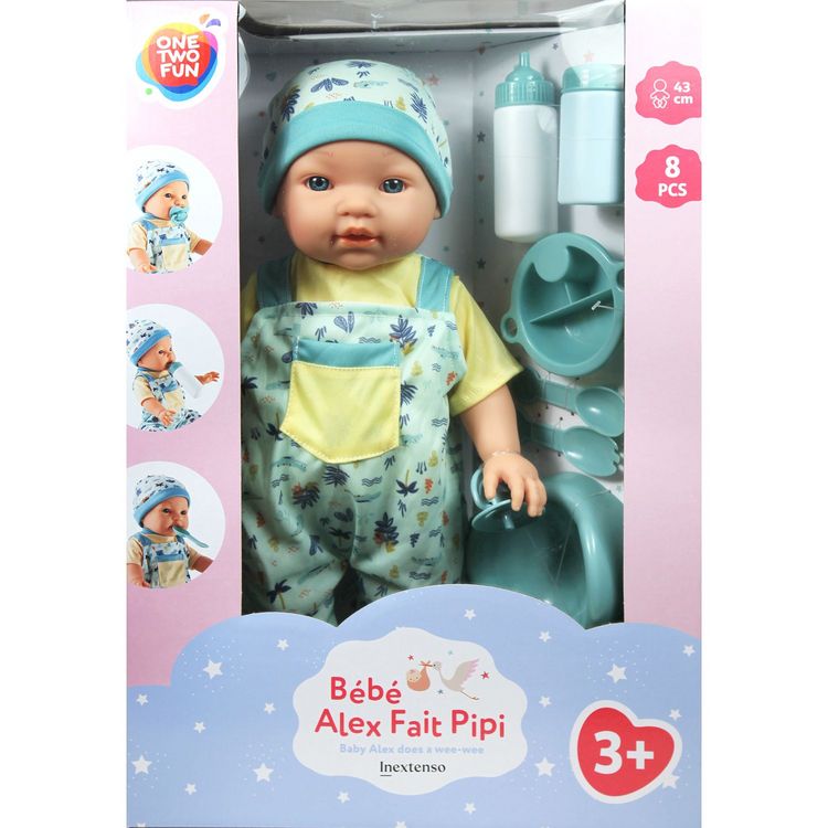 Poupée Bébé Alex fait pipi 43 cm + Accessoires 8 pièces