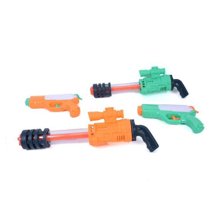 Avec ce kit comprenant 2 grands pistolets et 2 petits, vous êtes équipés pour une grande bataille d'eau et deux fois plus de fun !