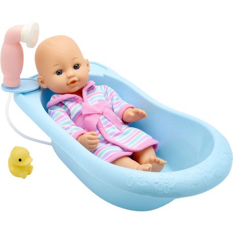 C'est l'heure du bain pour bébé Léa ! Elle s'amuse avec son canard. Utilise la douchette qui projette de l'eau pour la rincer. Sèche vite bébé avec son joli peignoir. Contient : 1 poupon de 30 cm, 1 douchette, 1 canard et 1 baignoire.