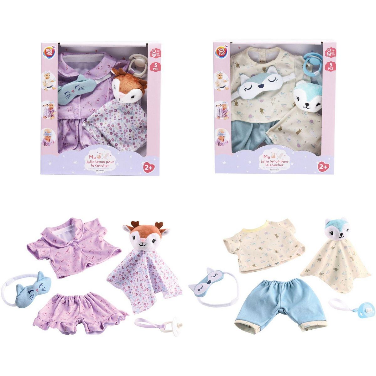Contient : 1 pyjama, 1 tétine, 1 doudou et 1 masque pour les yeux.