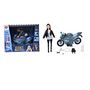 Pour activer son coup de pied retourné, enclenche le levier sur sa jambe. Mets-lui son casque, sur sa moto, appuie sur le bouton 1 pour allumer les feux avant et entendre le rugissement du moteur. Le bouton 2 fait avancer la moto, tandis que le bouton 3 déclenche des effets de fumée et un son de course-poursuite.