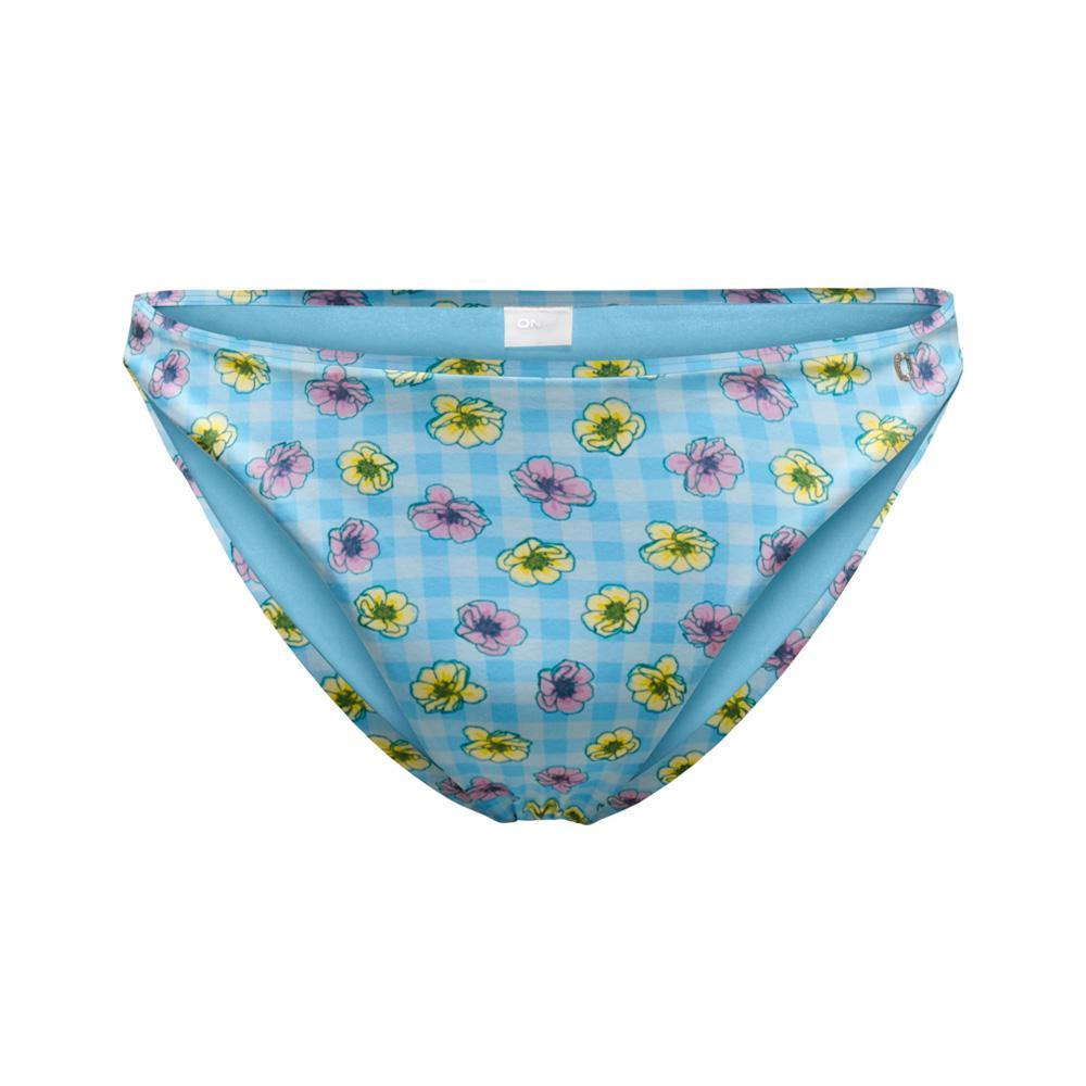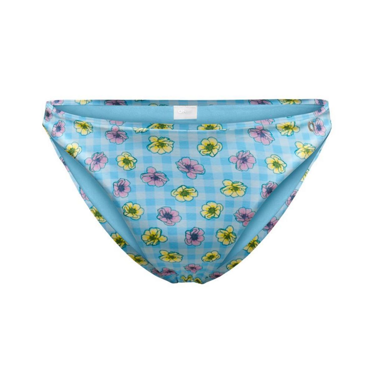 Bas de Bikini femme de la marque Only !Couvrance légèreTaille mi-hauteColoris : BleuImprimé fleurs et carreauxComposition : 85% polyester , 15% élasthanne