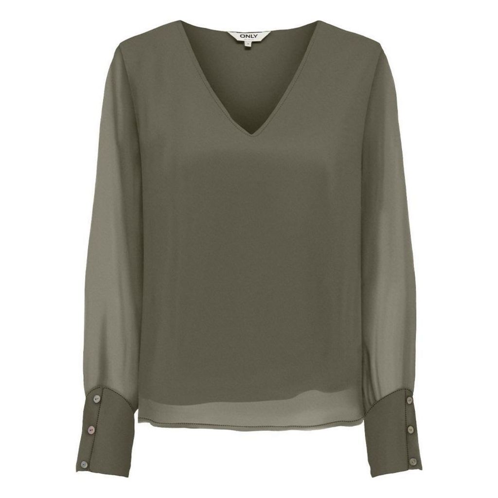 Blouse femme de la marque Only !Manches longuesCol VColoris : Kaki Imprimé léopardComposition : 100% polyester