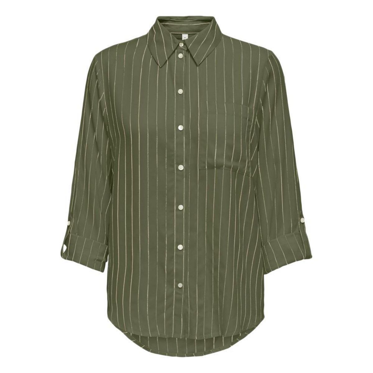 Optez pour cette chemise Only- Coloris : Kaki- Manches 3/4- Composition : 96% viscose, 4% fibres métalliques- Col chemise