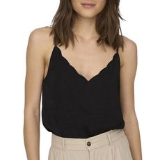 Optez pour le débardeur femme Only !Col VBretellesColoris : NoirTissu fluideComposition : 51% polyester recyclé , 49% polyester