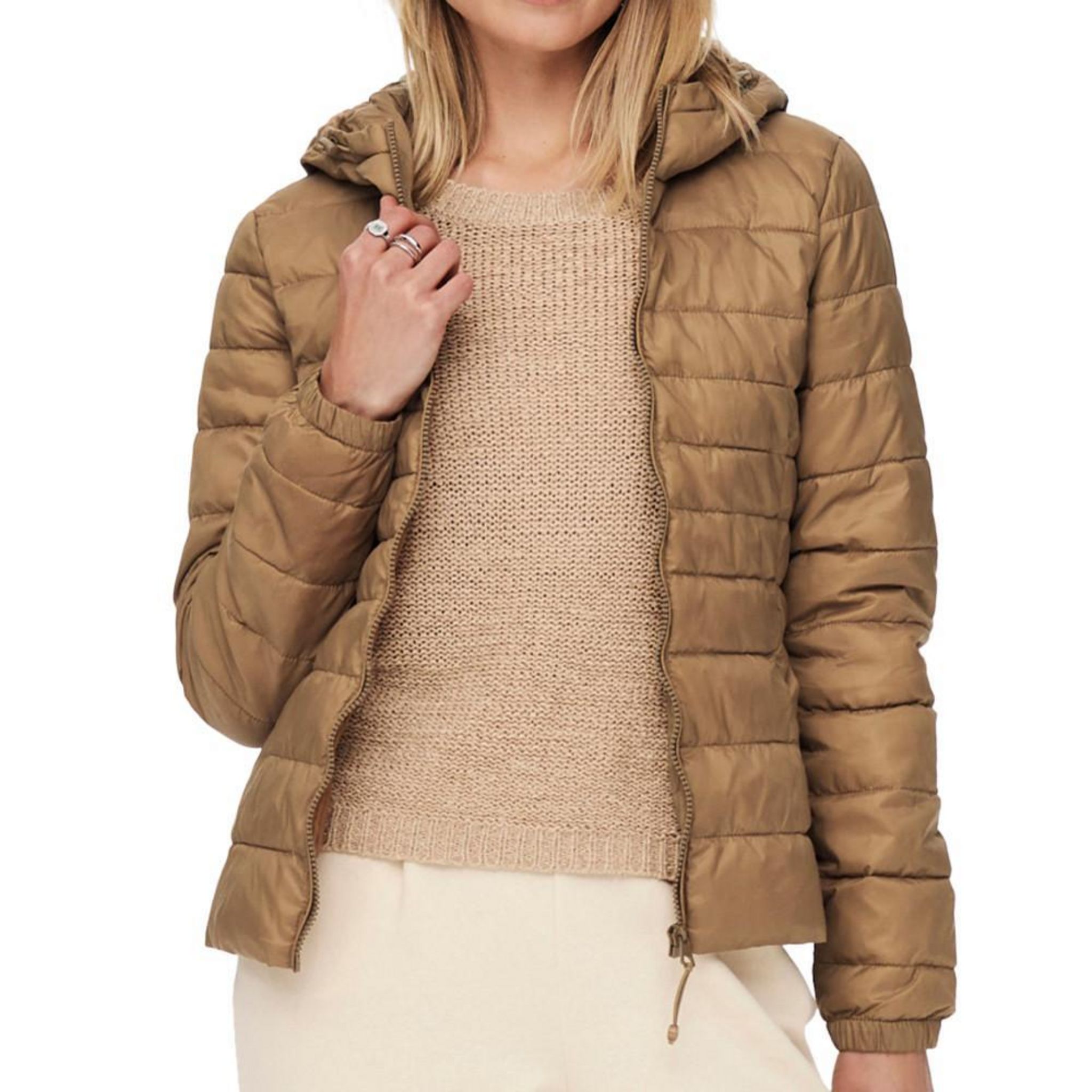 Doudoune Femme de la marque OnlyDoudoune avec capucheCol montantFermeture par zip métalliquePoches latéralesTaille et poignets élastiquesColoris : MarronComposition : 100% nylon