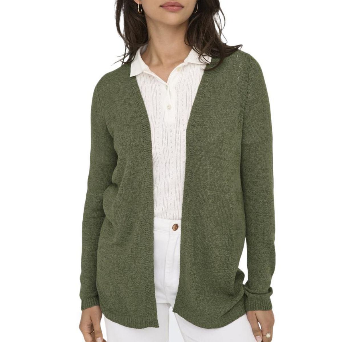 Optez pour le gilet femme de la marque Only !- Manches longues- Sans fermeture- Coloris : Kaki- Composition : 55% Acrylique , 45% Nylon