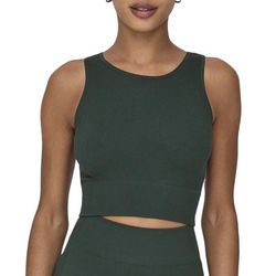 Craquez pour le haut de sport de la marque ONLY PLAY Coloris : Vert foncé Col rond Bretelles Tissu extensible Composition : 75% nylon, 15% Polyamide