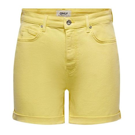 Short femme de la marque Only Coloris : Jaune 5 poches Revers sur le bas Tissu stretch Coupe mom Taille haute Composition : 98% coton , 2% élasthanne