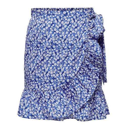 Craquez pour la jupe femme Only !Coloris : BleuImprimé fleursTaille élastique avec lien Tissu fluide et légerComposition : 65% polyester recyclé , 35% polyester