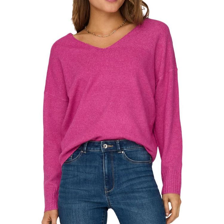 Pull femme de la marque Only !Coloris : Rose Col VManches longuesComposition : 50% polyester recyclé , 43% polyester , 4% nylon , 3% élasthanne
