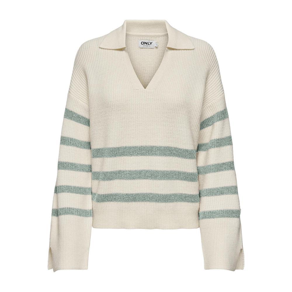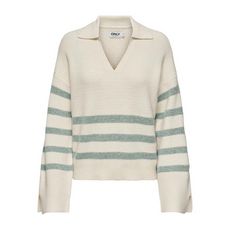 Craquez pour le pull femme Only !Manches longuesCol V RayuresColoris : Ecru/VertMailleComposition : 50% viscose , 27% nylon , 23% polyester