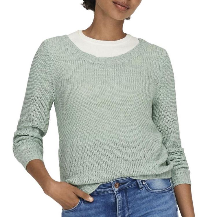 Découvrez ce pull de la marque Only !Couleur : Vert Coupe looseManches longuesCol rondPull en mailleComposition : 65% acrylique, 35% polyamide