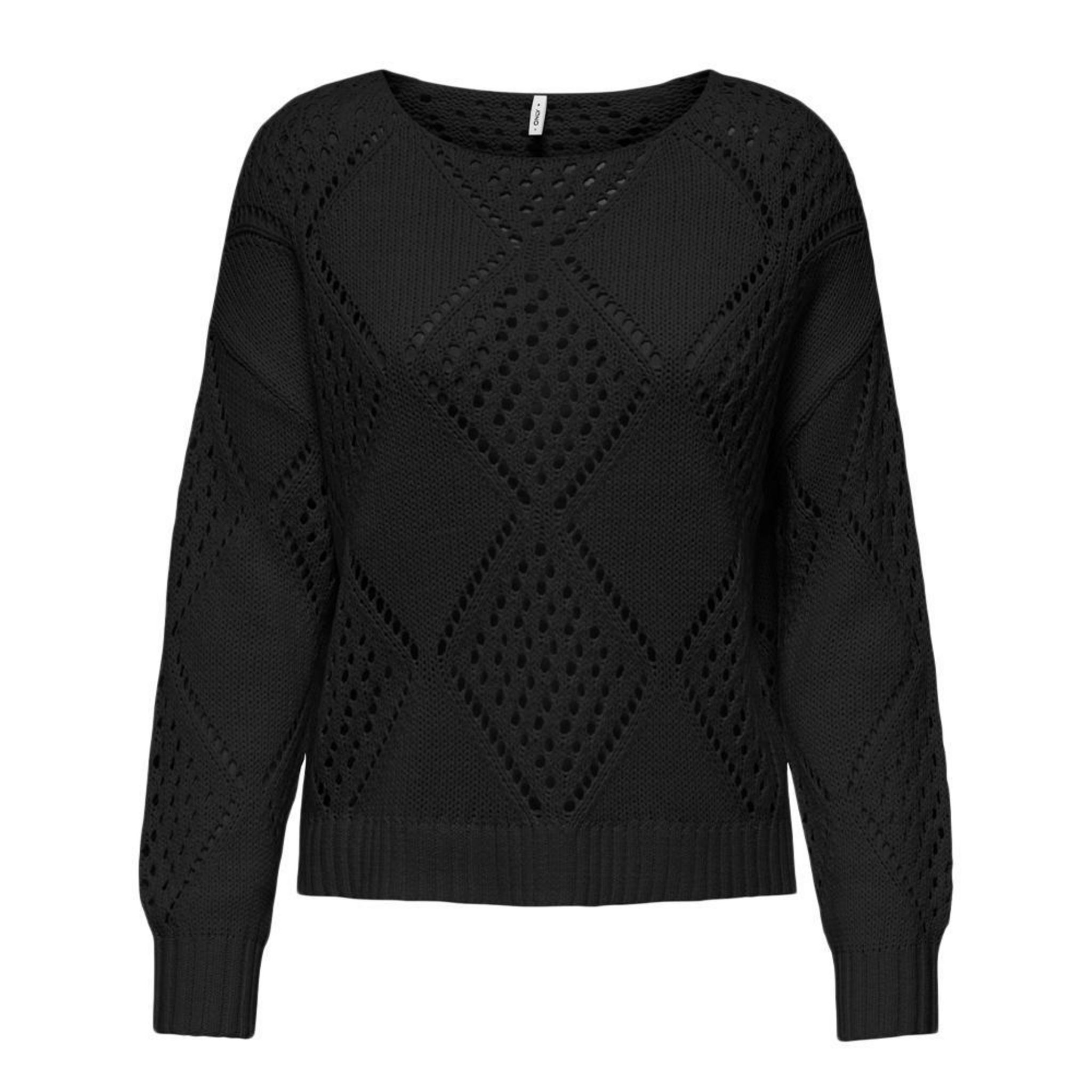 Craquez pour le pull femme de la marque OnlyManches longuesCol rondColoris : NoirMaille ajouréeComposition : 60% coton , 40% acrylique