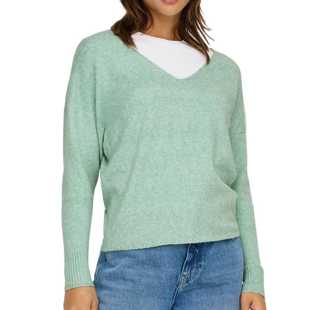 Pull femme de la marque Only !Col VManches longuesColoris : VertComposition : 50% polyester recyclé , 43% polyester , 4% nylon , 3% élasthanne