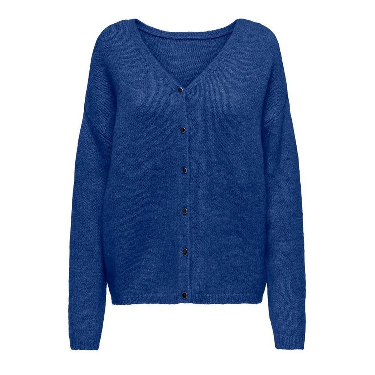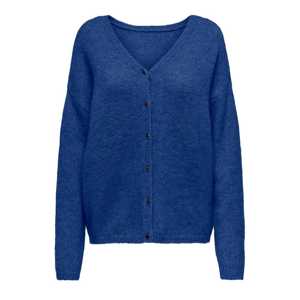 Pull femme de la marque Only !Manches longuesCol V Modèle réversibleFermeture à boutonsComposition : 35% polyester recyclé, 32% polyester , 24% acrylique , 7% acrylique , 2% élasthanne