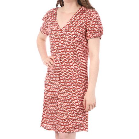 Robe pour femme de la marque Only Manches courtes Col V Coloris : Orange Imprimé fleurs Boutons sur l'avant Composition : 100% viscose