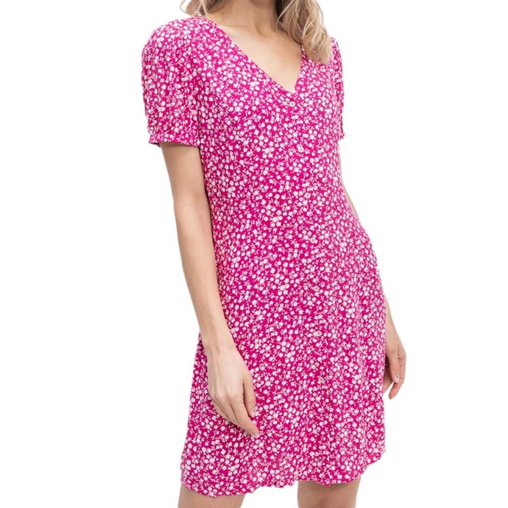 Robe pour femme de la marque Only Manches courtes Col V Coloris : Rose Imprimé fleurs Boutons sur l'avant Composition : 100% viscose