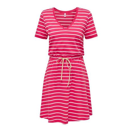 Craquez pour la robe de la maque ONLY à prix bas !Coloris : Rose/BlancCol VManches courtesCeinture à la tailleTissu à rayureComposition : 100% Coton