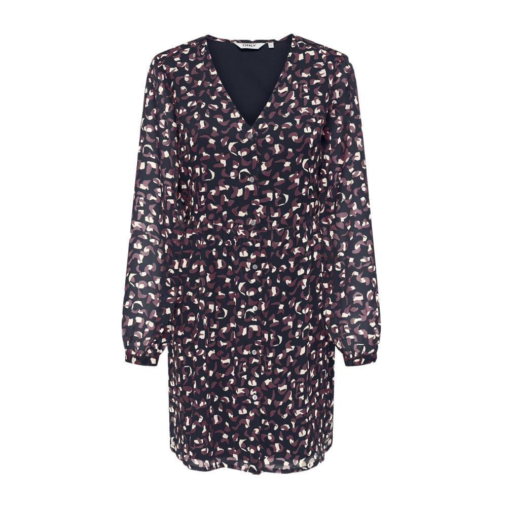 Craquez pour les robe de la marque ONLY !Coloris : Marine/BordeauxCol VManches longuesCoupe droiteComposition : 100% Polyester
