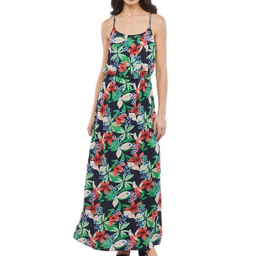 Optez pour la robe femme de la marque Only !Bretelles finesCol rondColoris : MarineImprimé fleursTaille élastiqueCoupe longueComposition : 100% viscose