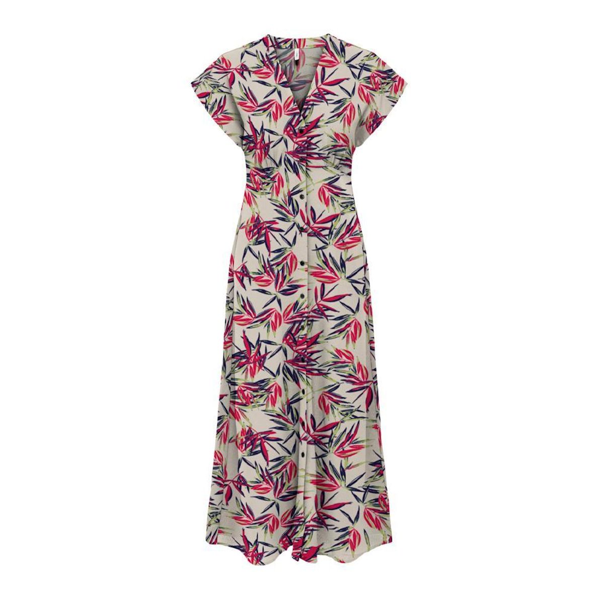 Découvrez sans plus attendre la robe pour cet été de la marque ONLY !Coloris : Blanc Col VManches courtesTissu impriméRobe longueComposition : 100% viscose
