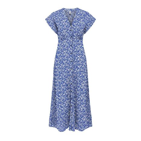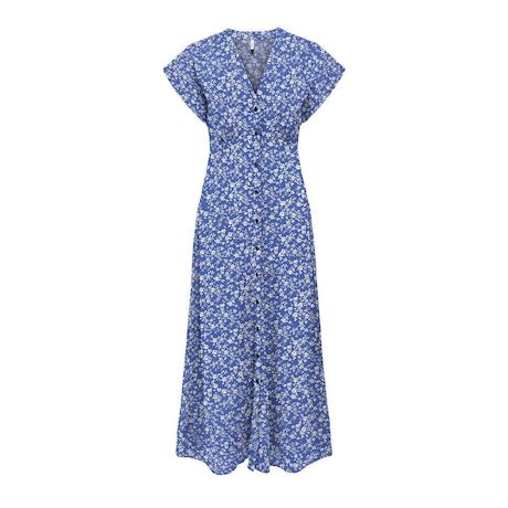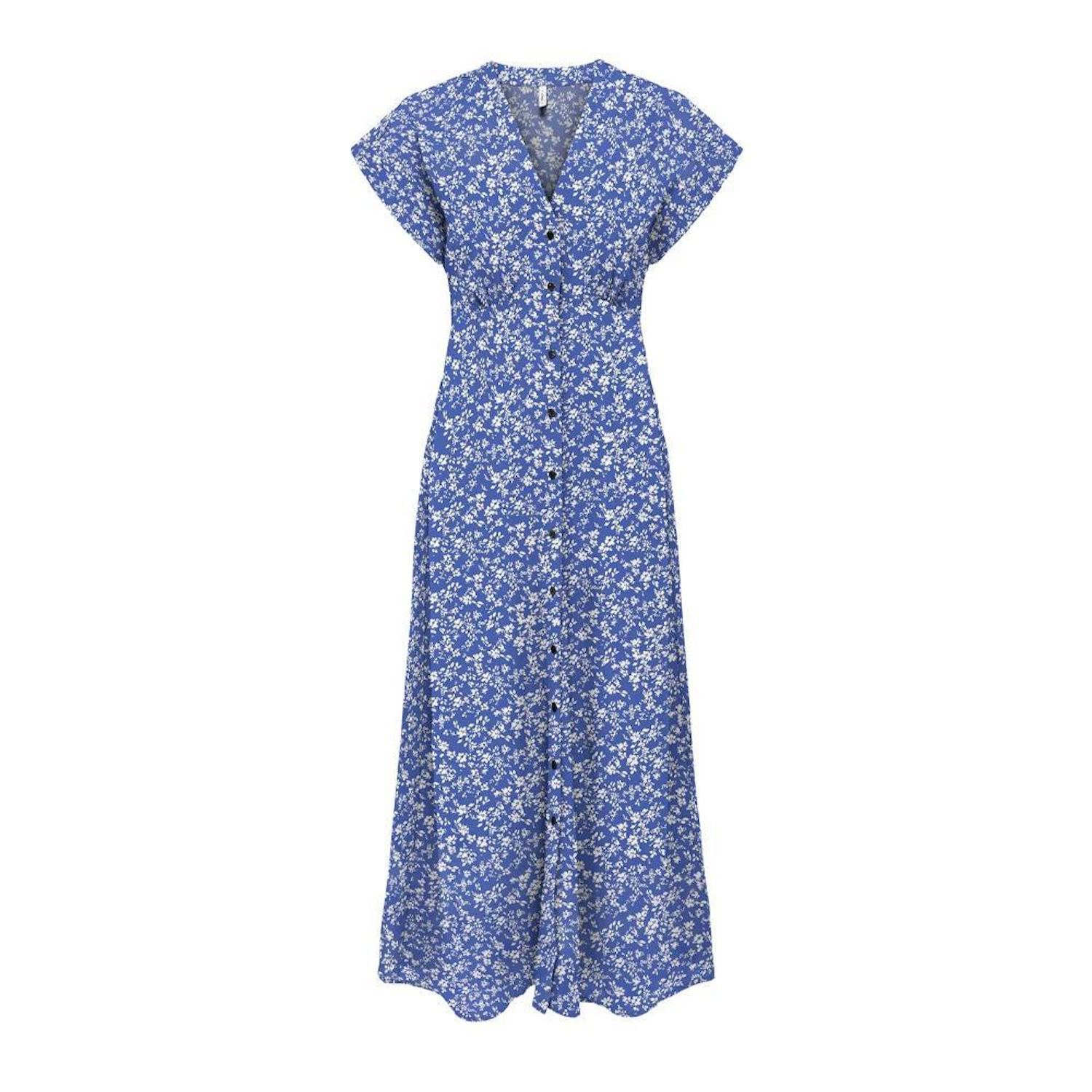 Découvrez sans plus attendre la robe pour cet été de la marque ONLY !Coloris : BleuCol VManches courtesTissu impriméRobe longueBoutons nacrés Composition : 100% viscose