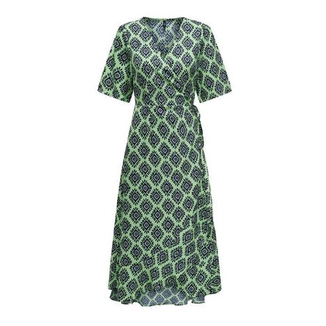 Craquez pour cette robe de la marque Only ! Coloris : Vert FluoManches courtes avec élastiqueNoeud sur le côtéRobe portefeuilleCol VComposition : 100% viscose