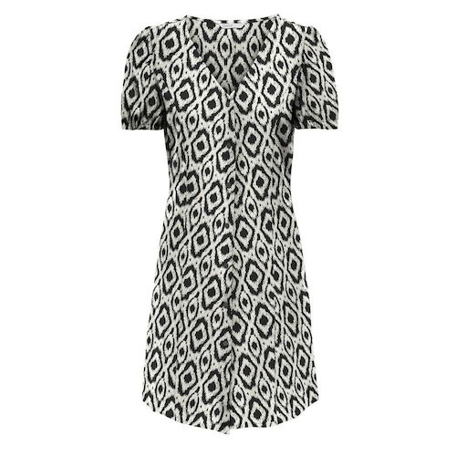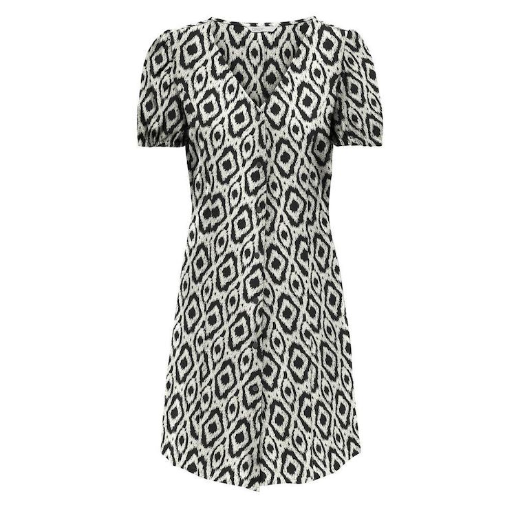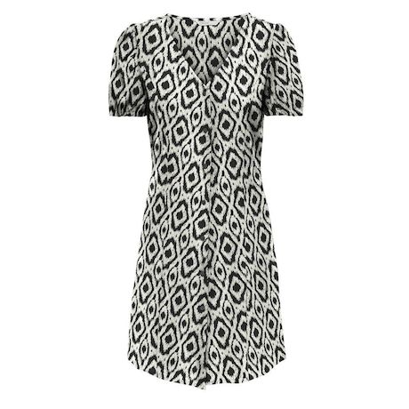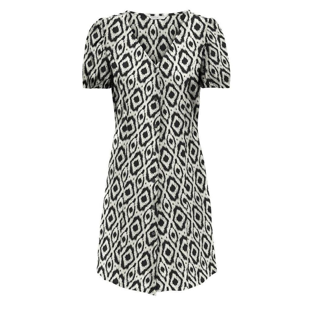 Robe pour femme de la marque Only- Manches courtes- Col V- Coloris : Noir/Beige- Imprimé fleurs- Boutons sur l'avant- Composition : 100% viscose