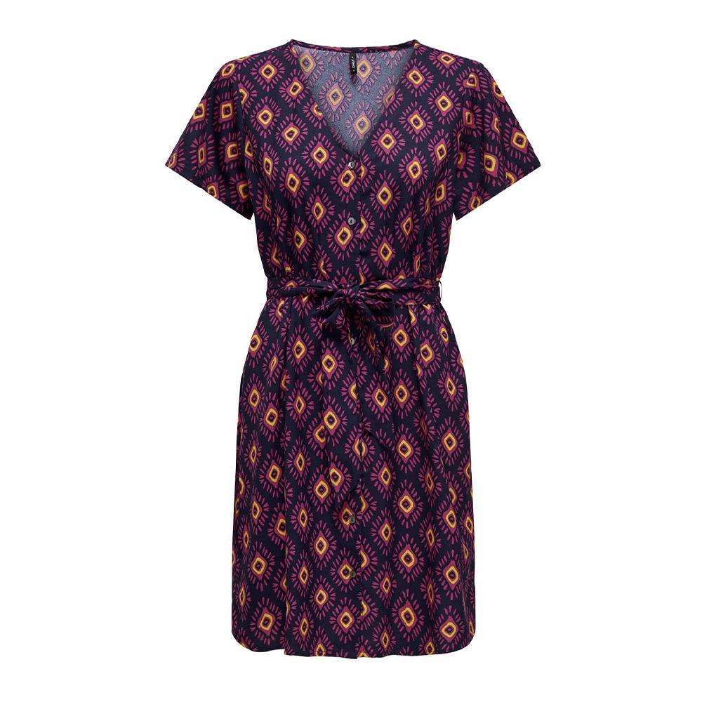 Optez pour cette robe de la marque Only ! Coloris : Marine/RoseCol VManches courtesImprimés ethniquesCeinturé à la tailleComposition : 100% polyester
