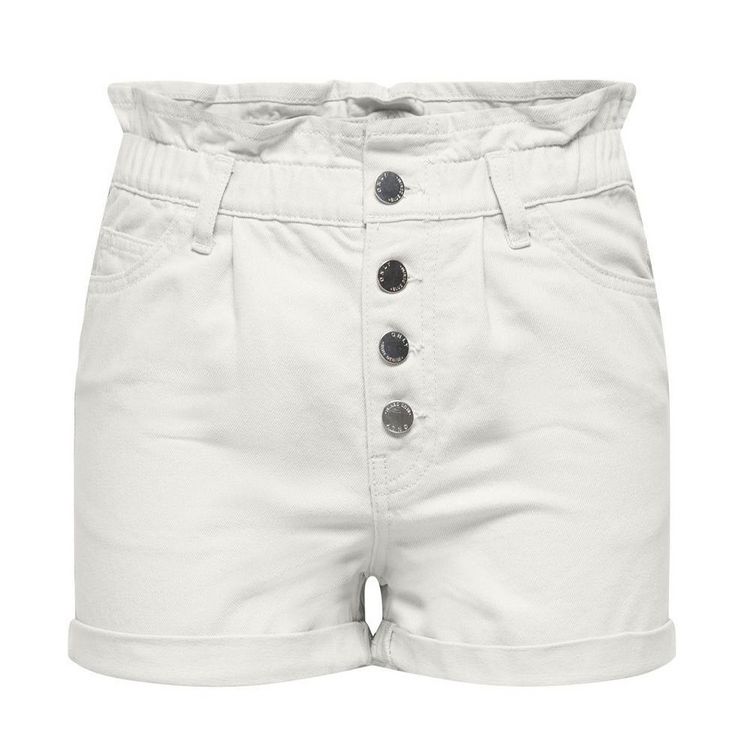 Optez pour ce short Only Coloris : BlancComposition : 100% cotonTaille hautePassants de ceintureÉlastique à la tailleFermeture boutonnée sur le devantRevers en bas