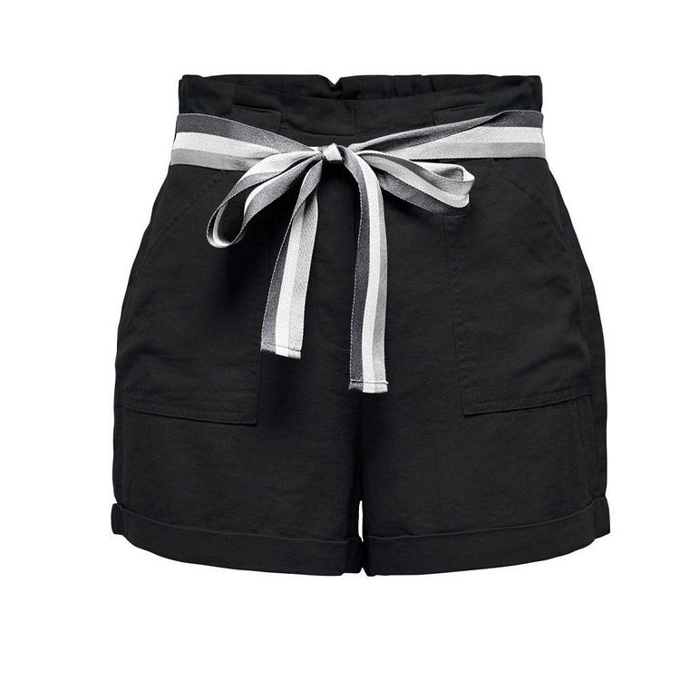 Craquez pour le short de la marque ONLY !Coloris : Noir Coupe standard Poches latérales Ceinture Composition : 55% Lin, 45% Viscose