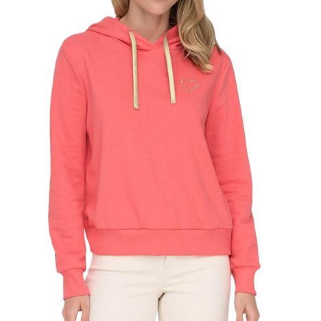 Craquez pour le sweat femme de la marque Only !CapucheManches longuesColoris : CorailLogo coeur brodéComposition : 60% coton , 40% polyester