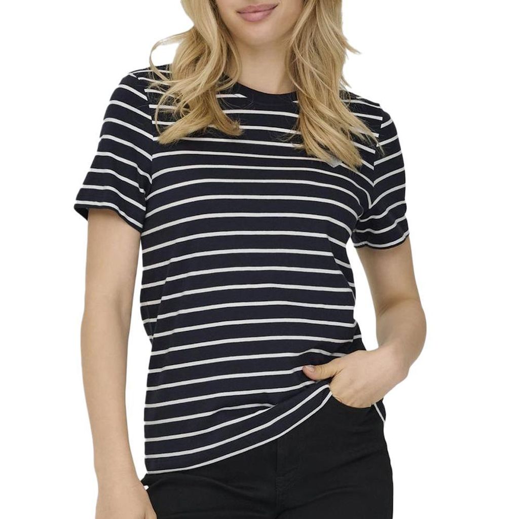 Optez pour ce t-shirt Only Coloris : Marine/BlancCol rondManches courtesComposition : 100% coton