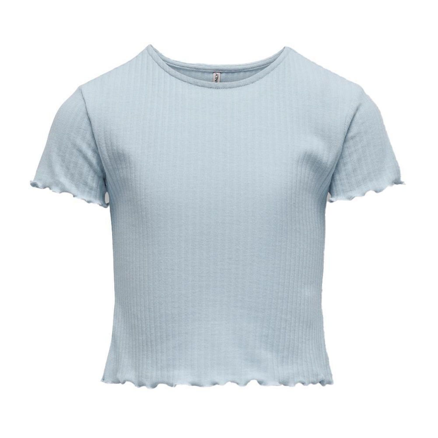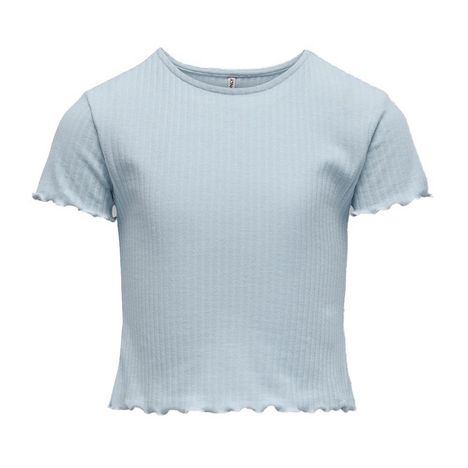 T-shirt de couleur unie de la marque ONLY KIDSTissu côteléCol rondColoris : Bleu ClairManches courtesOurlets avec finitions à volantsTissu stretchComposition : 65% polyester, 30% viscose, 5% élasthanne