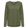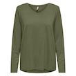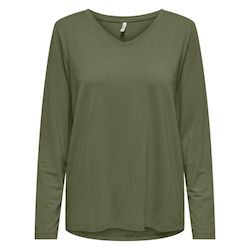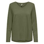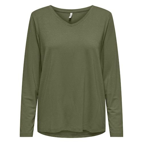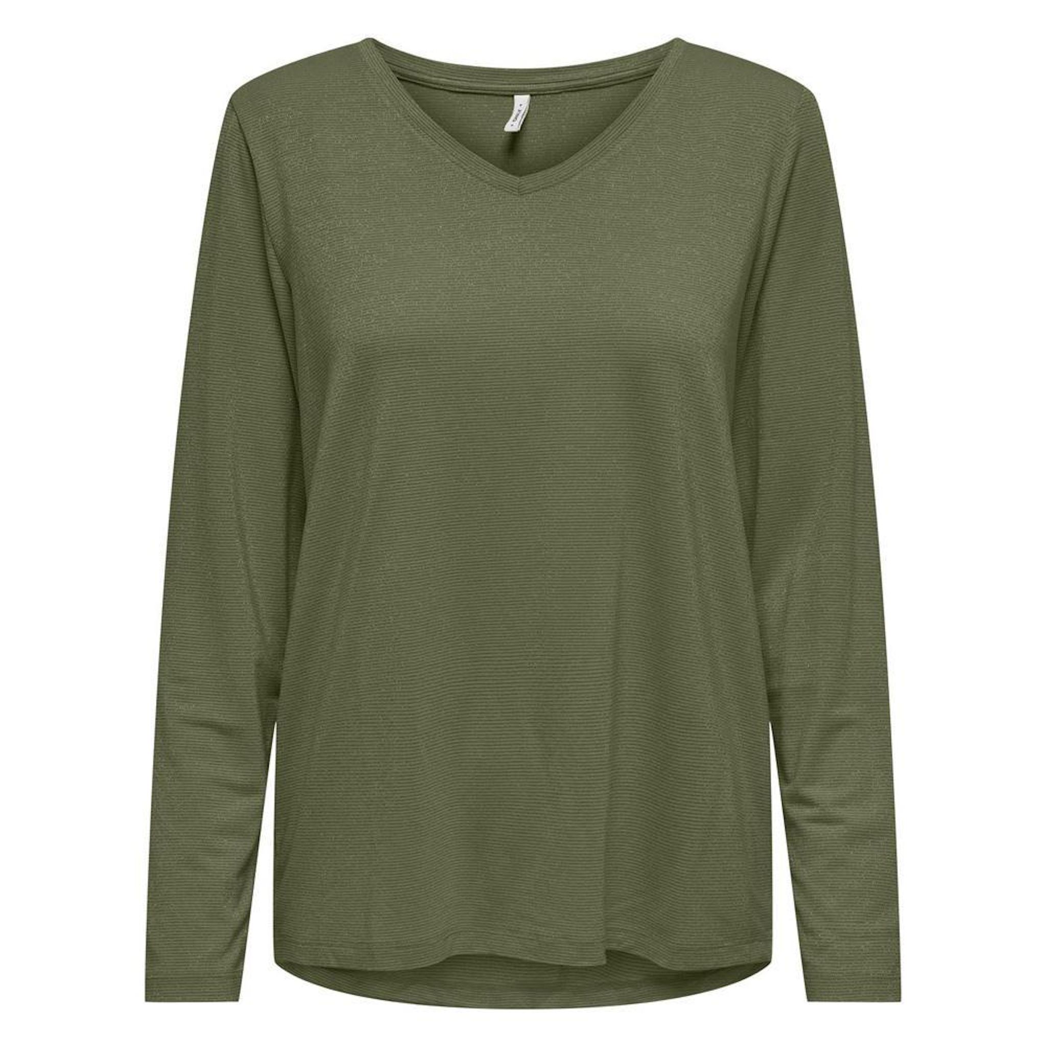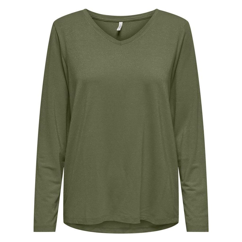 T-shirt pour femme de la marque Only !- Manches longues- Col V- Rayures- Coloris : Kaki- Composition : 75% viscose , 20% fibres métalliques , 5% élasthanne