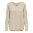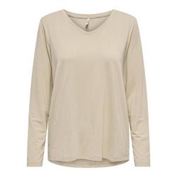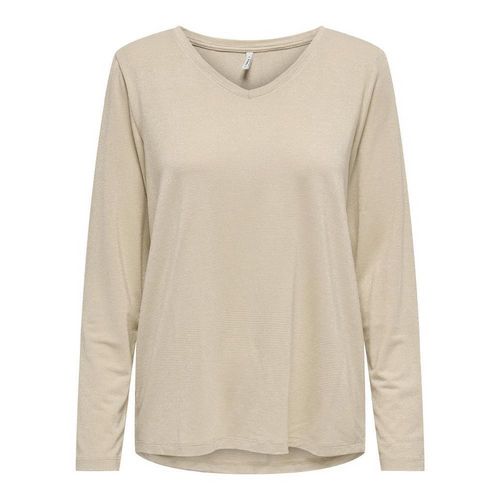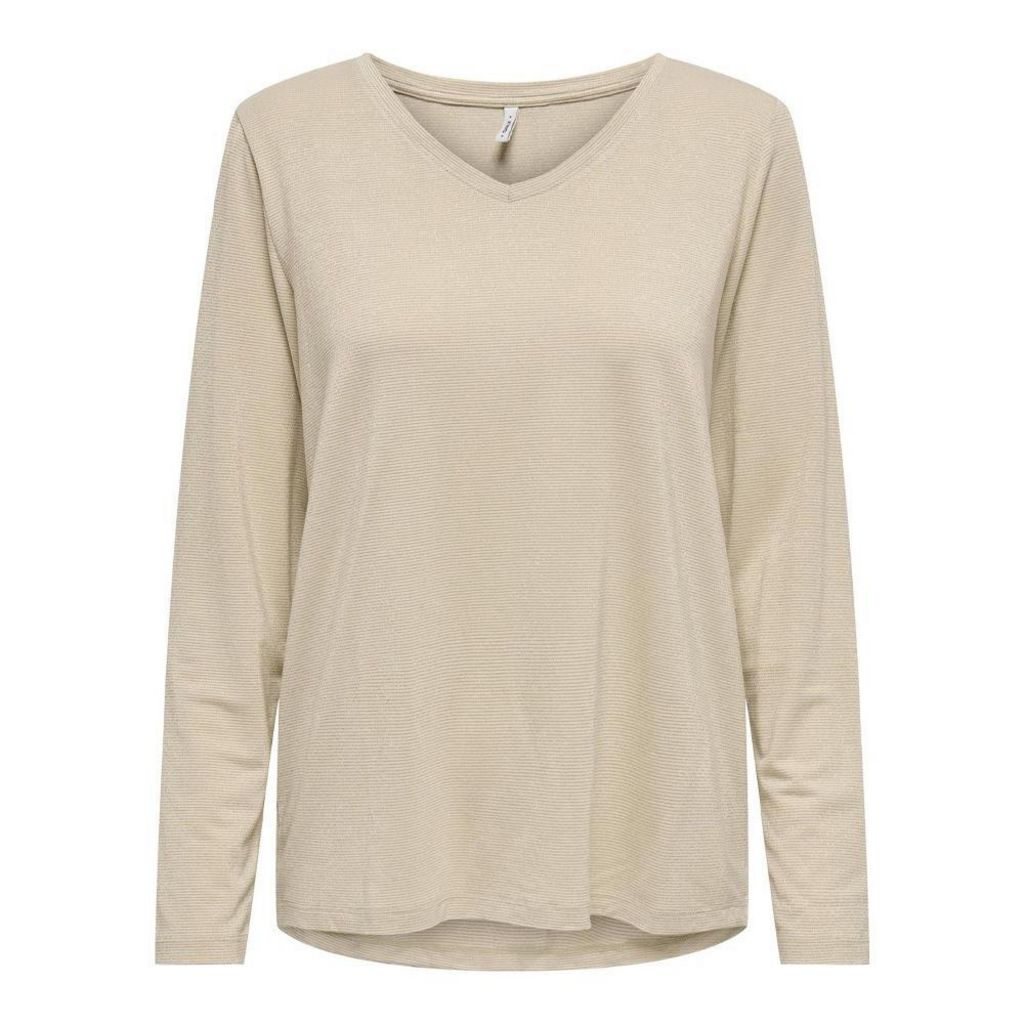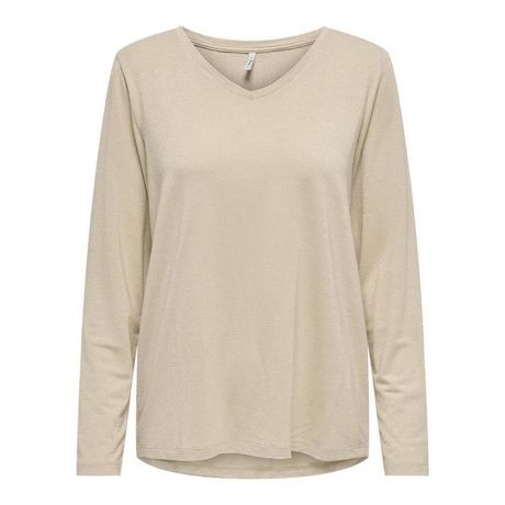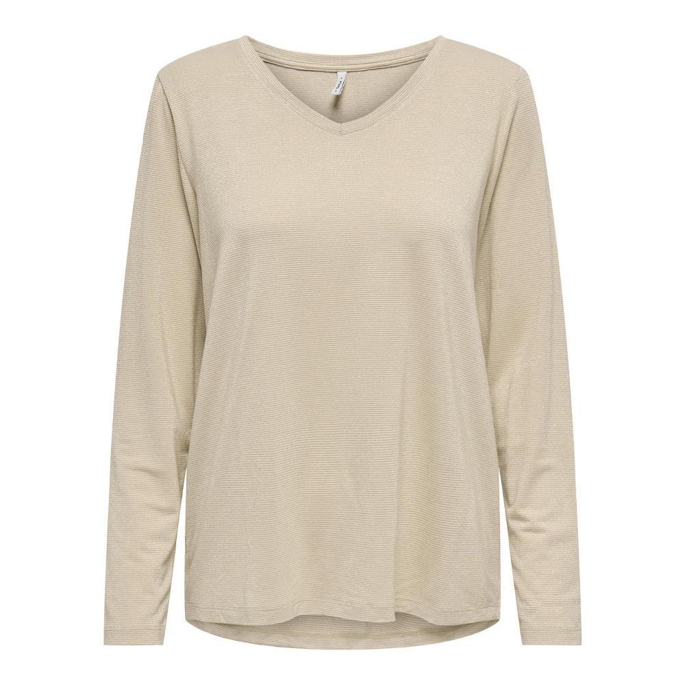 T-shirt pour femme de la marque Only !Manches longuesCol VRayuresColoris : BeigeComposition : 75% viscose , 20% fibres métalliques , 5% élasthanne