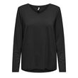 Craquez pour le t-shirt de la marque ONLY !Coloris : Noir Col V Manches longues Coupe droite Détail brillant Composition : 75% Viscose, 20% Métallique, 5% Élasthanne