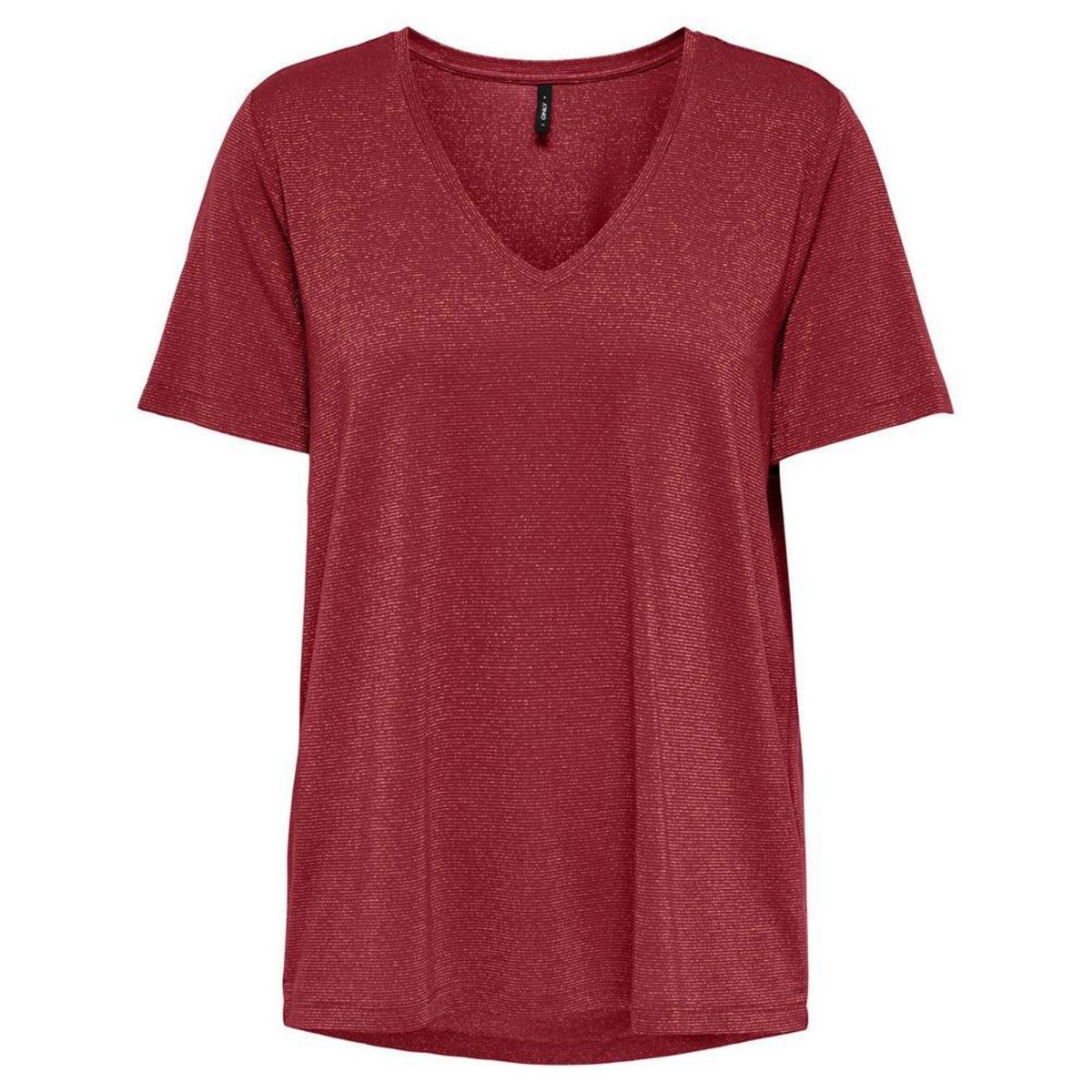 T-shirt femme Only !Manches courtesCol VRayuresColoris : Rouge Composition : 75% viscose , 20% fibres métalliques , 5% élasthanne