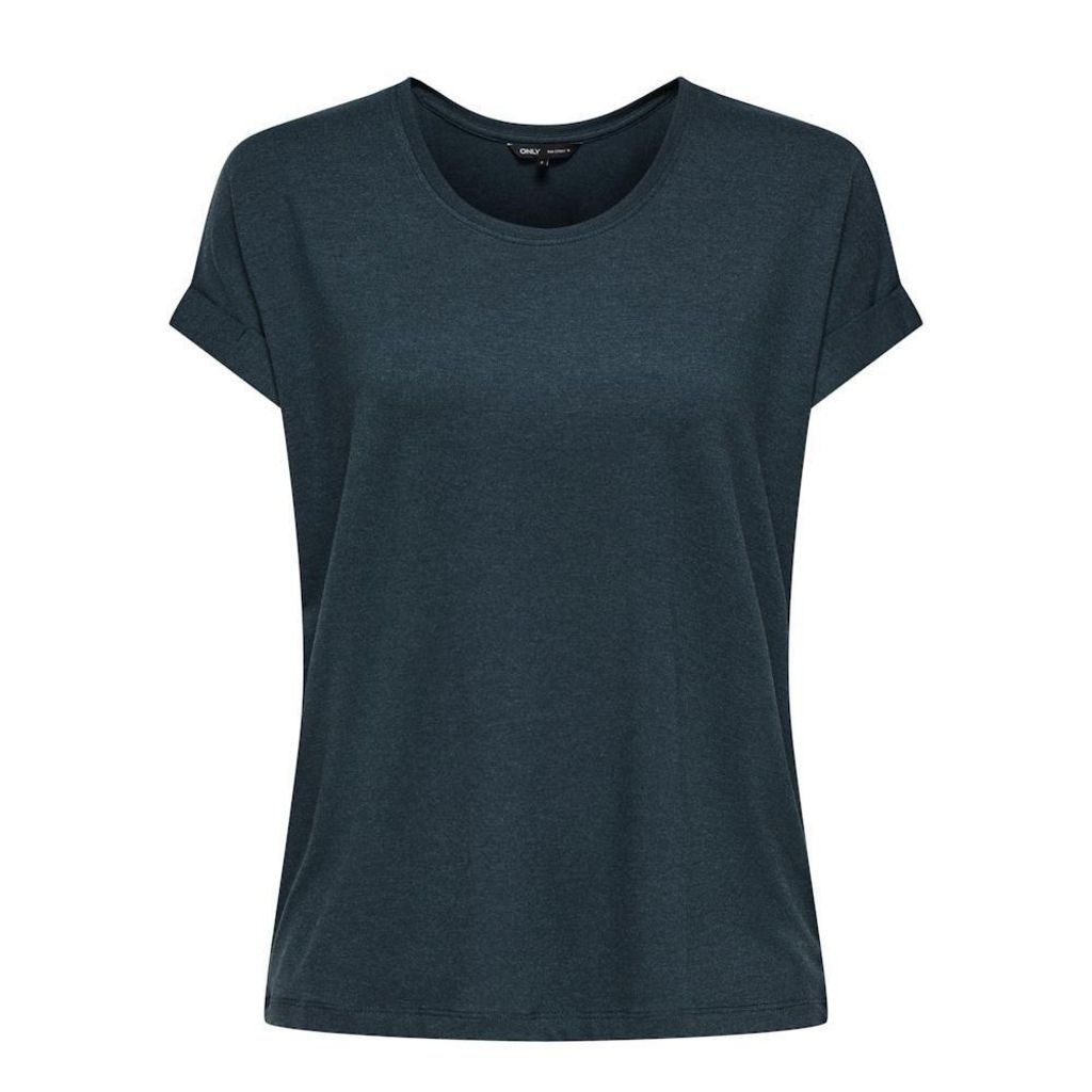 T-shirt femme de la marque OnlyManches courtes avec reversCoupe ampleCol rondColoris : Marine Composition : 75% viscose , 20% polyester , 5% élasthanne
