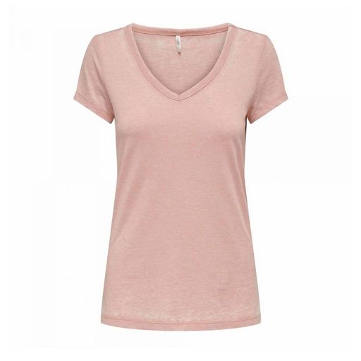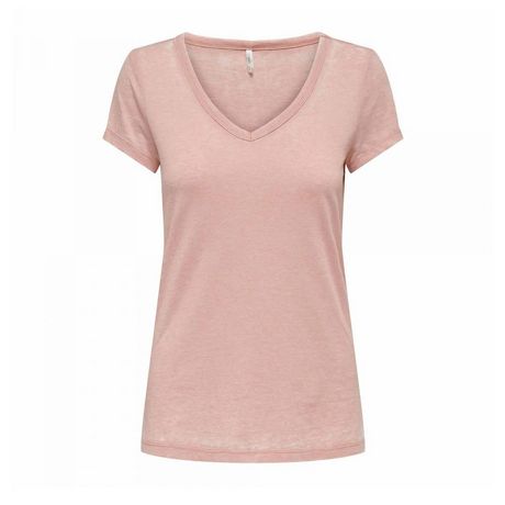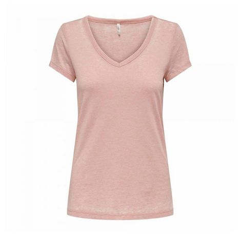 T-shirt pour femme de la marque Only Manches courtes Col V Coloris : Rose délavé Tissu léger Composition : 65% polyester , 35% coton