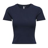 Optez pour ce t-shirt Only à prix bas !- Coloris : Marine- Col rond- Manches courtes- Composition : 65% polyester, 30% viscose, 5% élasthanne