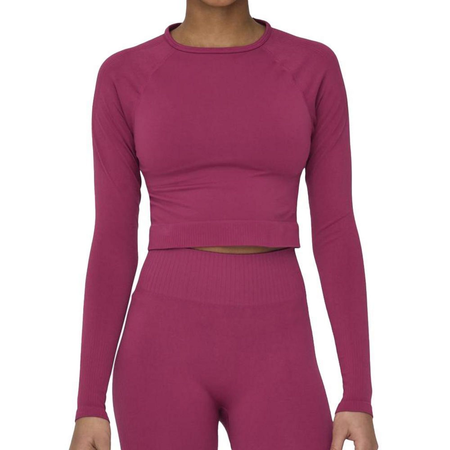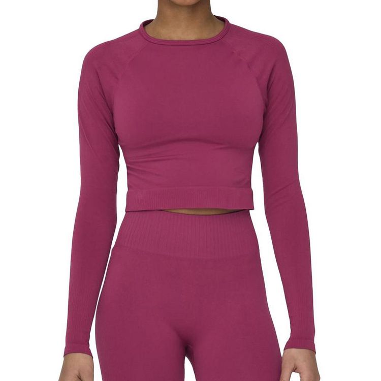Craquez pour le top de sport Only !Manches longuesCol rondColoris : fuchsiaCoupe courteComposition : 83% Polyamide, 17% Élasthanne