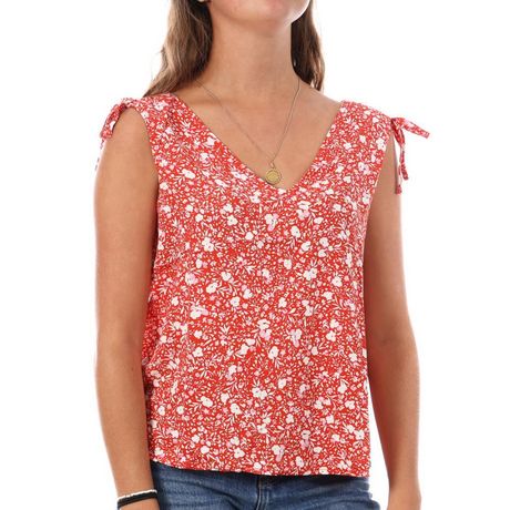 Craquez pour le top ONLY à prix bas !Coloris : Rouge Col V Sans manches Tissu imprimé Composition : 100% Polyester