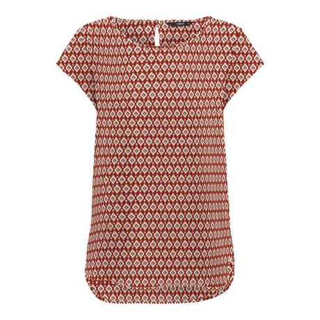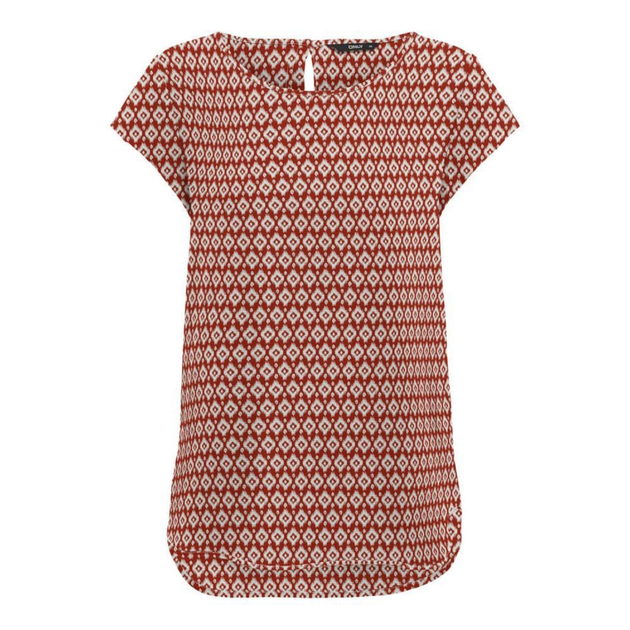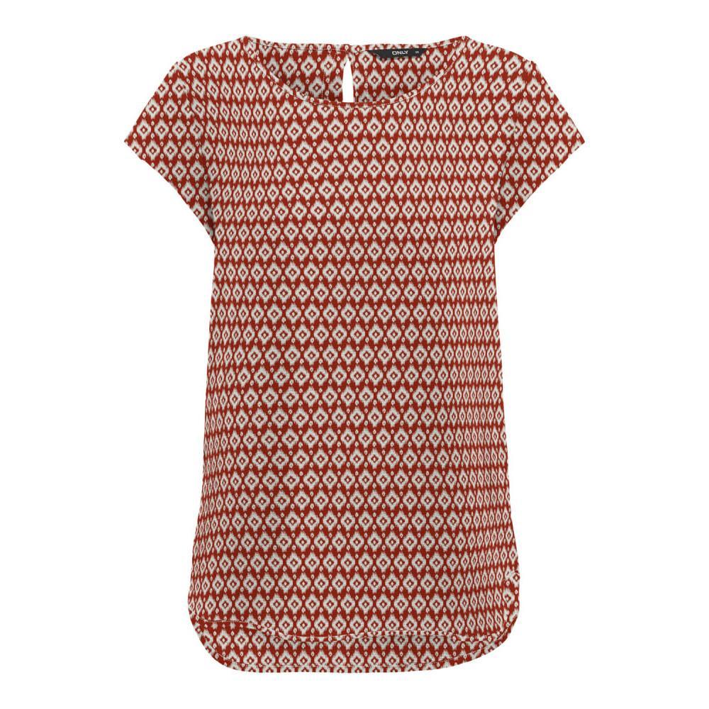 Top pour femme de la marque Only- Manches courtes- Col rond- Coloris : Rouge- Imprimé- Composition : 100% viscose