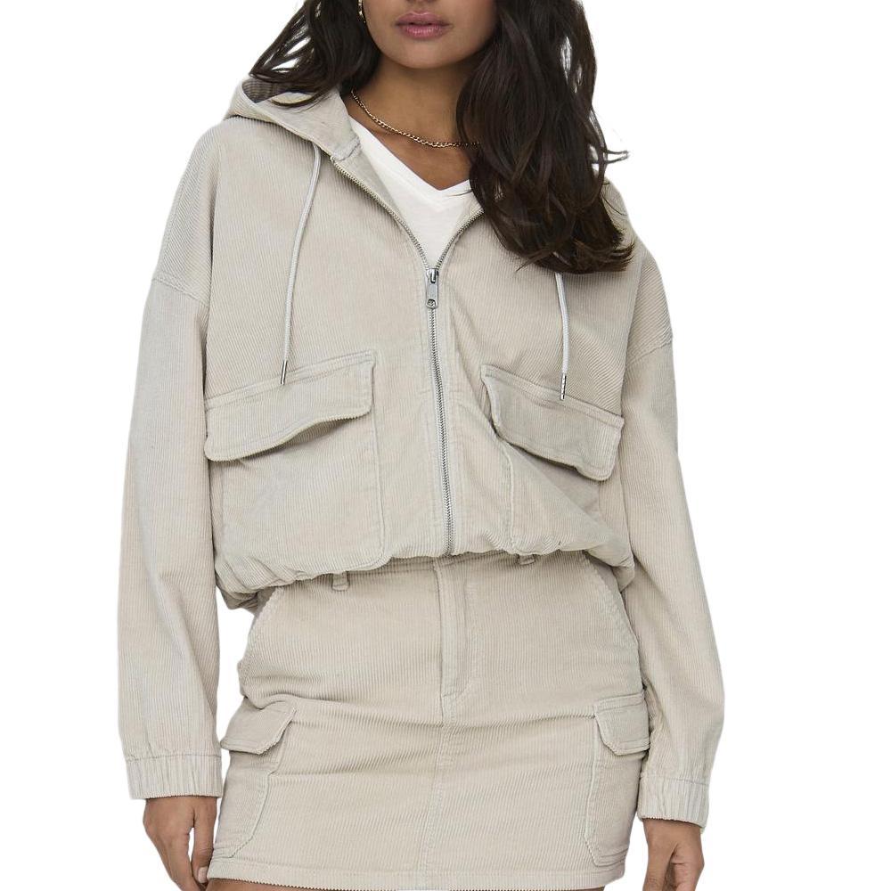 Craquez pour la veste femme Only !Manches longuesCapucheFermeture à zipTissu velours côtelé2 pochesCoupe courte avec élastique sur le basComposition : 98% coton , 2% élasthanne